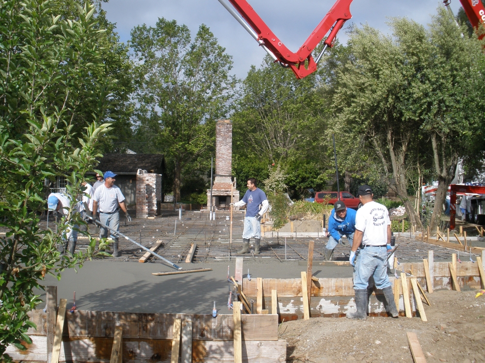 Cement company pouring foundation for re-build of 1970's Ranch style home in Healdsburg